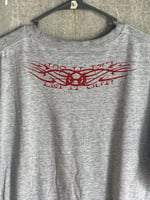 VINTAGE HEAVYWEIGHT GRAY T-SHIRT WITH BIN BEAUTIFUL GRAPHIC WITH WHITE INK // TRIBAL LET IT OUT UPPER BACK PRINT IN RED INK// size::: LARGE