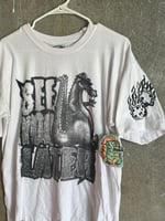 ALL WHITE T-SHIRT WITH SEE YOU LATER GATOR FRONT PRINT///FLAMING DICE SLEEVE PRINT// size::: LARGE
