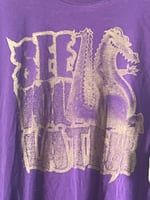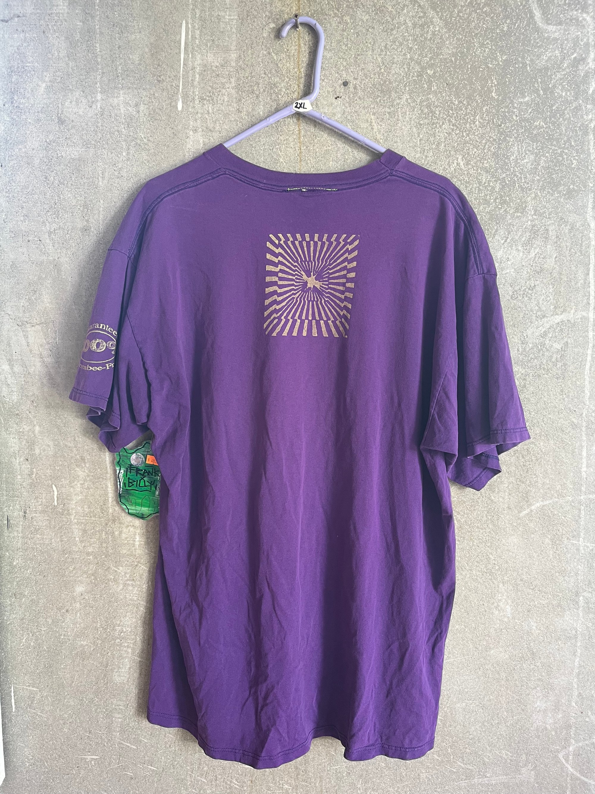 VINTAGE PURPLE JERZEES tee shirt with yellow ink //l8tr GaTR front print////100% wanna bee free sleeve print/// FRACTAL FLASH back top print// SIZE:: 2 X L