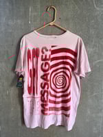 LIGHT PINK T-SHIRT WITH LET IT OUT SCREEN PRINT ON FRONT WITH RED INK// GET THE MESSAGE PRINT ON BACK // size:::: L A R G E