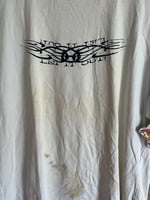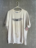 STAINED OFF WHITE///BEIGE BLANK T-SHIRT WITH TRIBAL PRINT ON THE FRONT///LET IT OUT GRAPHIC//GET THE MESSAGE OVERSIZED BACK PRINT ZOOM ZOOM ++ size:: XL